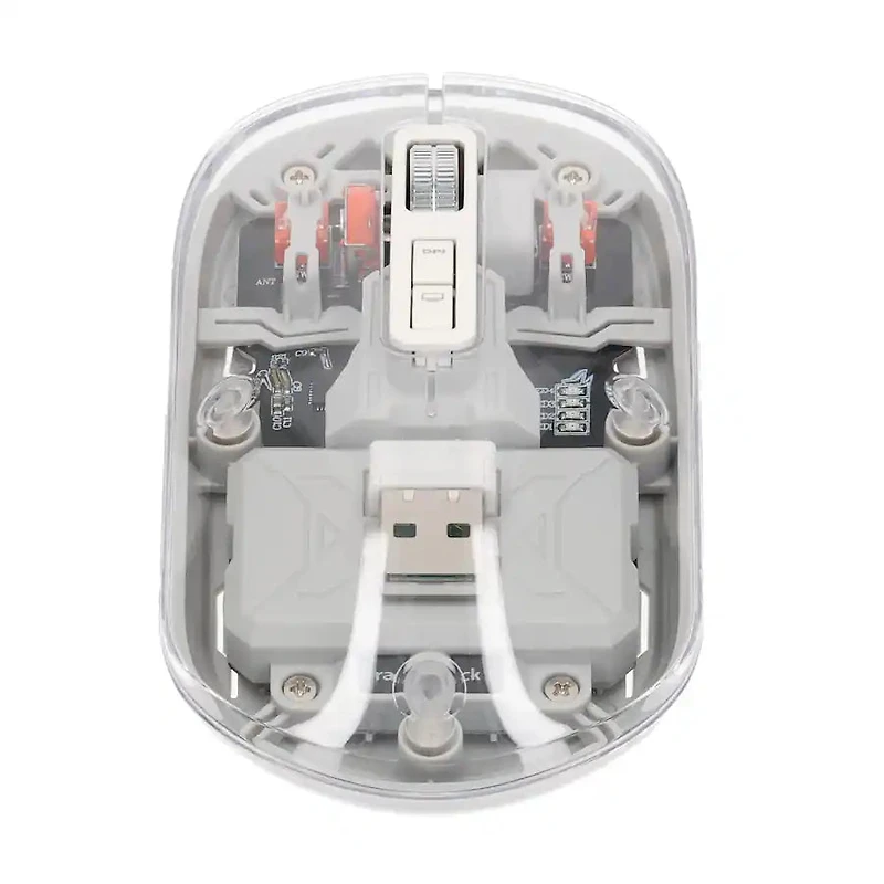 Featuring a transparent shell design, this mouse showcases its internal components for a stylish, tech-inspired look. The 2.4GHz wireless connection ensures smooth and reliable performance without tangled cords, while the included USB nano receiver offers quick plug-and-play setup.
