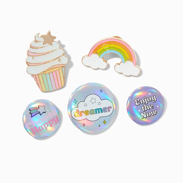 Rainbow Round Button & Pin Set - 5 Pack