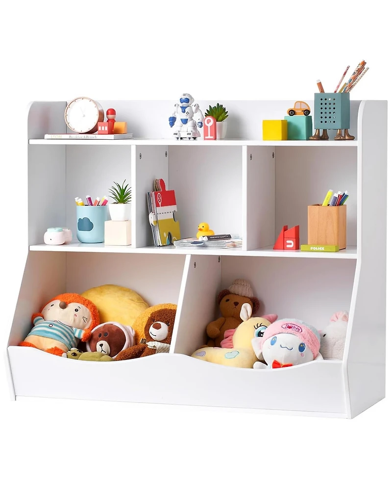 This Kid Storage Cabinet is a practical 5-cubby organizer designed for children s daily essentials. Made of safe and sturdy wood, it offers multiple open compartments to store toys, books, art supplies, and clothes. Ideal for kids rooms, playrooms, nurseries, and kindergartens.