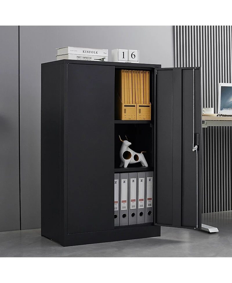 This Metal Storage Cabinet is a folding filing cabinet designed for home office, school, and workplace use. It features lockable doors for security, an adjustable shelf for flexible storage, and a sturdy metal structure for long-lasting durability.