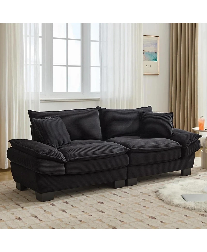 This living room couch is crafted from premium corduroy fabric for a soft, breathable feel. High-density, high-elasticity foam and fluffy, cloud-like fibers combine to create a soft yet supportive seat and backrest. Whether you're taking a nap or sitting for an extended period, you'll enjoy the gentle, enveloping comfort of a ""cloud.""