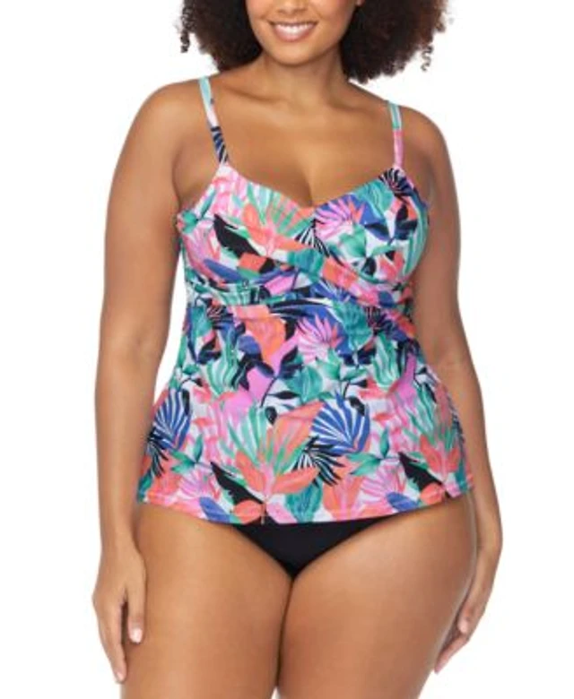 Raisins Curve Trendy Plus Size Aviva Floral Underwire Tankini Top Costa Ruched Bikini Bottoms