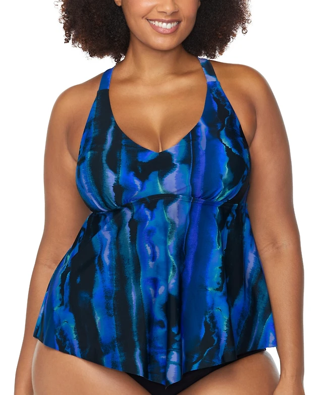 Raisins Curve Womens Plus Size Marita Trendy Printed Tankini Top Full Coverage Bottoms