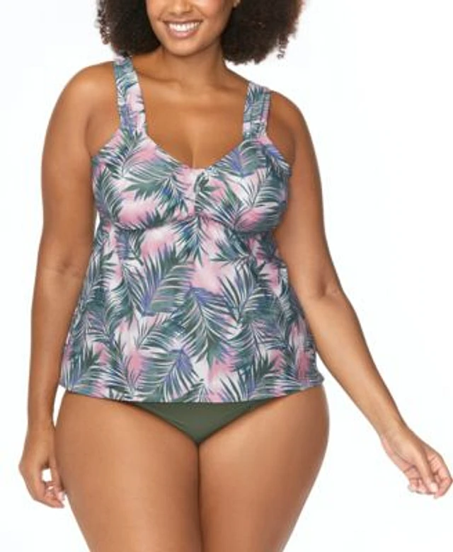 Raisins Curve Trendy Plus Size Andressa Ruffled Tankini Top Costa Ruched Bikini Bottoms