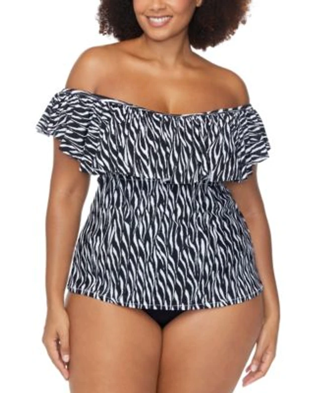 Raisins Curve Trendy Plus Size Tortuga Ruffled Tankini Top