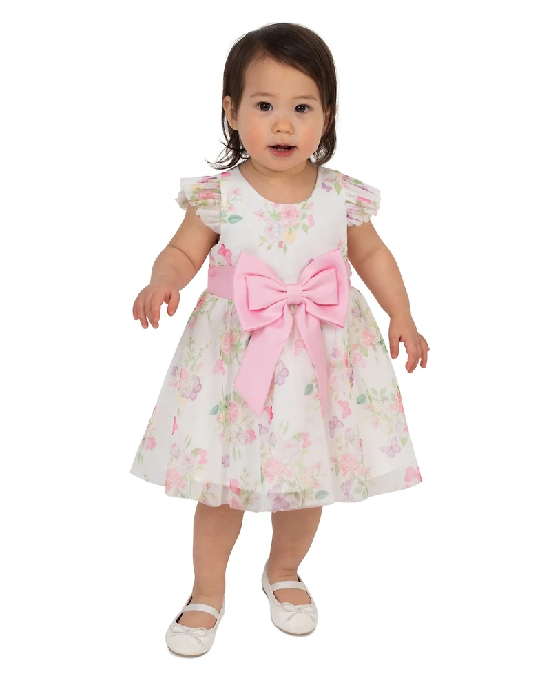 Rare Editions Baby Girls' Botanical Floral Mesh Round Neck Dress and Panty, 2-Piece Set