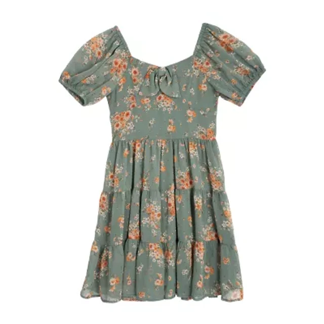 Rare Editions Big Kid Girls Short Sleeve Puffed A-Line Dress