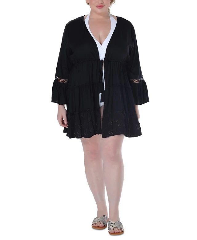 Raviya Plus Lace-Inset Eyelet-Flounce Cover-Up