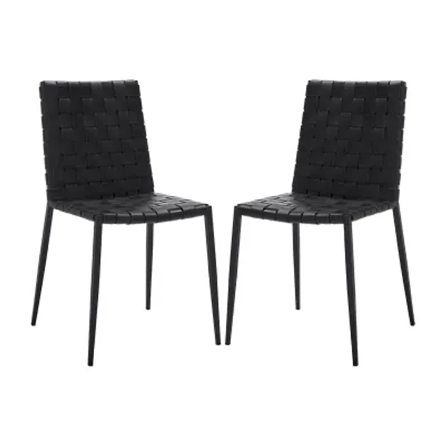Pranit Dining Chair with Woven Leather Seat - Set of 2