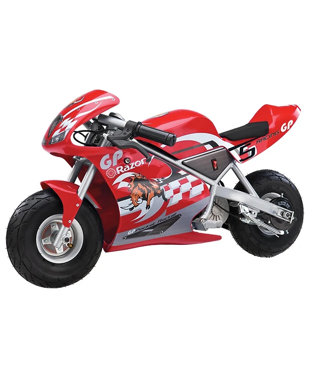 Razor 24V Mini Electric Bike, Single Speed Racing Motorcycle Pocket Rocket with 10 Inch Pneumatic Tires, Speeds up to 15 Mph, Ages 13 and Up, Red