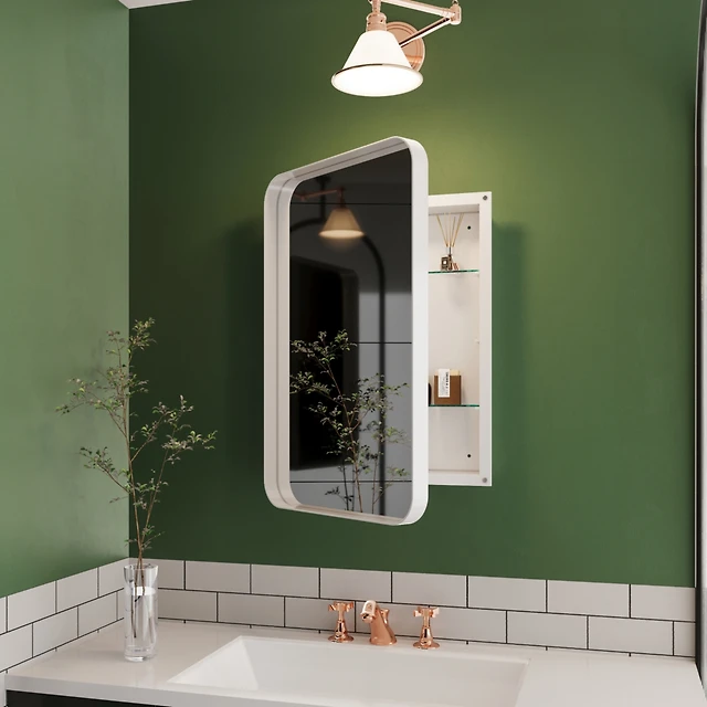 Corner Medicine Cabinet with Mirror with Open Mirror Door and Adjustable Shelf