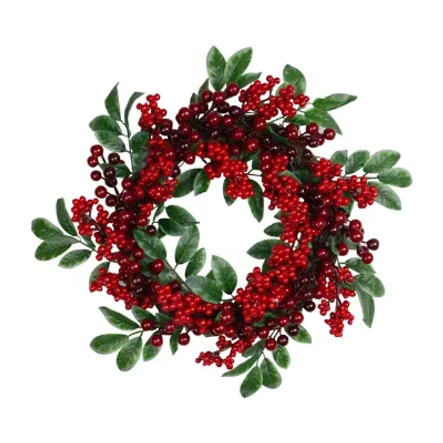 Red and Burgundy Berry Artificial Christmas Wreath 22-Inch Unlit