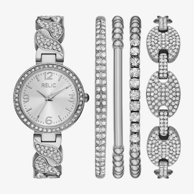 Relic By Fossil Tenley Womens Crystal Accent Silver Tone Bracelet Watch Zr34571