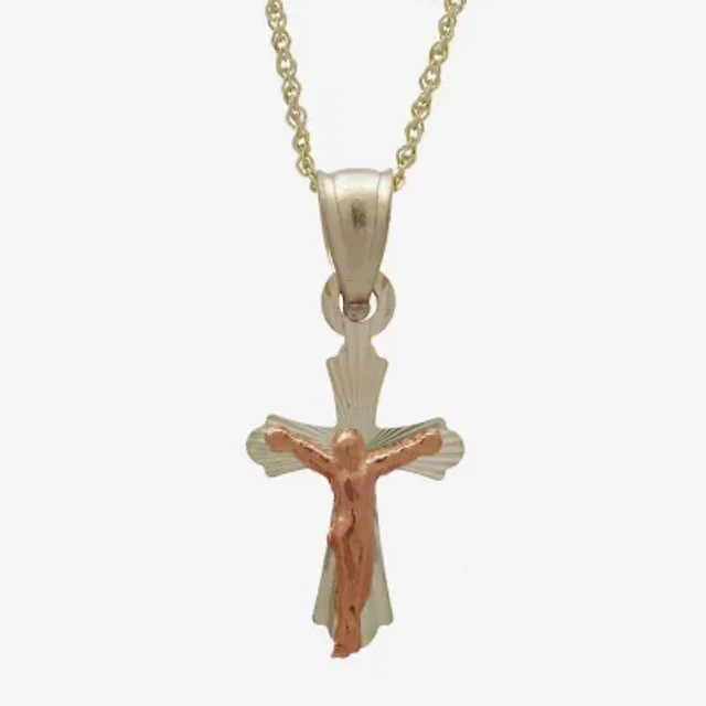 Crucifix Womens 14K Tri-Color Gold Cross Pendant