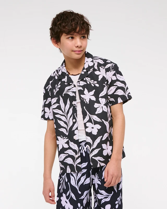 Short-Sleeve Summer Linen-Blend Button-Up Shirt