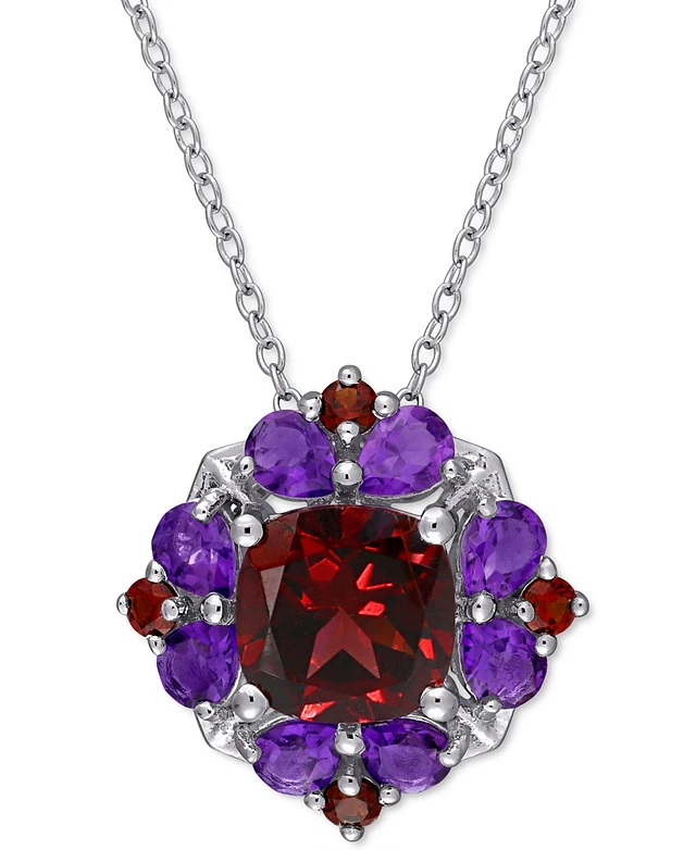Rhodolite Garnet (3-1/4 ct. t.w.) & Amethyst (1-1/8 ct. t.w.) Cluster 18" Pendant Necklace in Sterling Silver