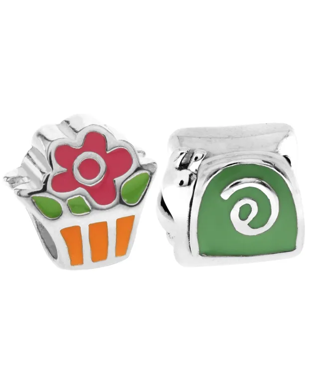 Rhona Sutton 4 Kids Children's Enamel Snail Flower Bead Charms - Set of 2 in Sterling Silver