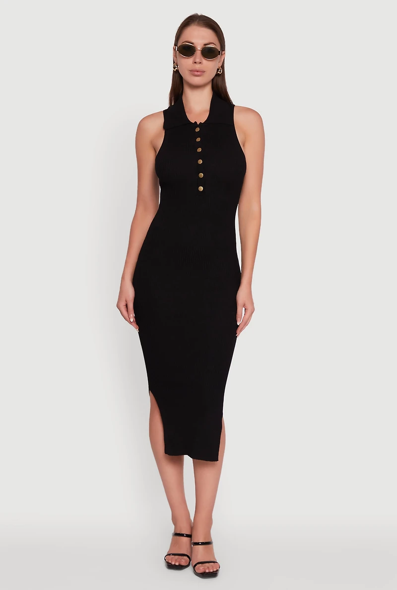 Ribbed Knit Sleeveless Midi Dress with Collar and Side SlitRibbed Knit Sleeveless Midi Dress with Collar and Side SlitRibbed Knit Sleeveless Midi Dress with Collar and Side SlitRibbed Knit Sleeveless Midi Dress with Collar and Side SlitRibbed Knit Sleeveless Midi Dress with Collar and Side Slit