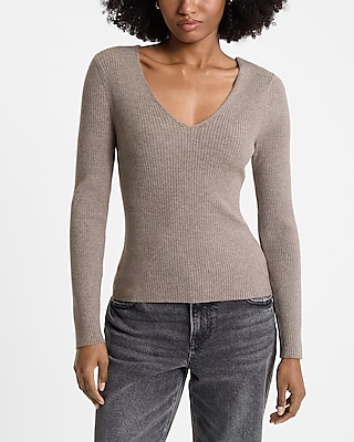 Silky Soft Fitted Ribbed Long Sleeve Double V-Neck Sweater