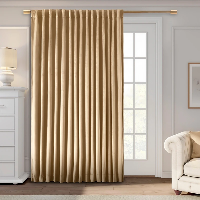 Effortlessly beautiful with meticulously constructed custom-like details! This luxurious velvet curtain will deliver instant drama and appeal to any space, available in the most neutral and glamorous pop of colors.