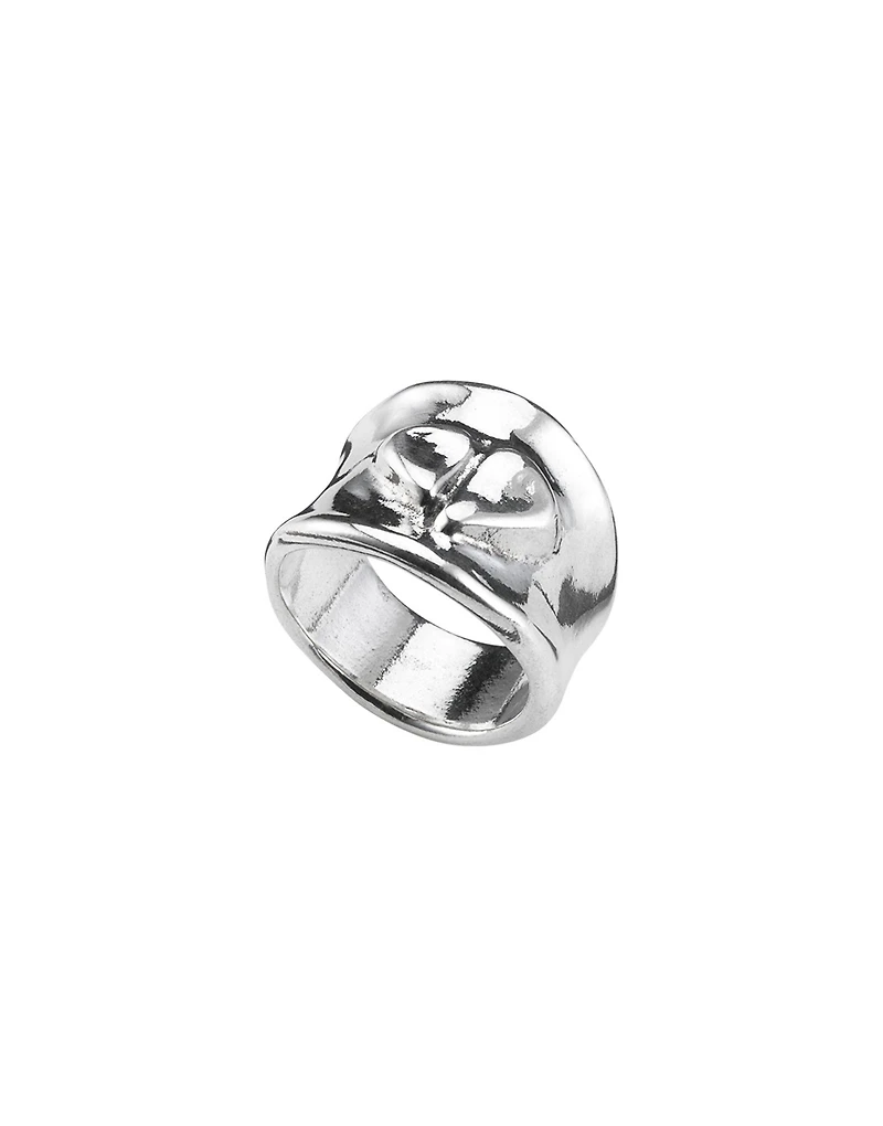 Wide silver plated ring with an irregular heart in relief in its central part. A boho chic inspired jewel that will be the perfect complement to your daily outfits. A piece with heart designed by UNOde50 in Spain and manufactured by a 100% handmade process.