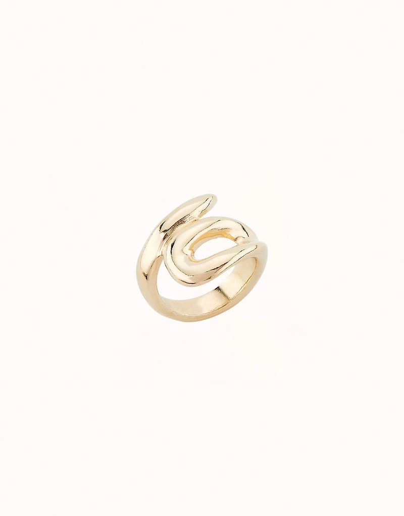 Simple gold-plated metal ring shaped as a spiral closed needle, giving a feeling of movement in the hand. A unique jewel that you can wear without any other accessory enhancing your look on any occasion. An exclusive design by UNOde50, made in Spain and 100% handmade.