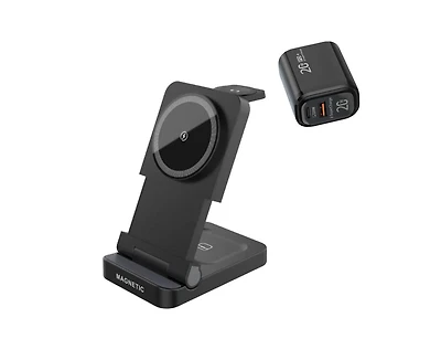 Risokeys 3-in-1 Wireless Charger with Charging Port - Compatible with Phone, Earphones and Watch, Magnetic Stand with MagSafe