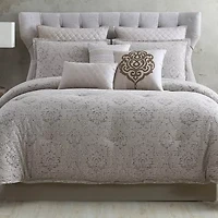 Included: 1 Bed Skirt(s) With 18 Inch Drop, 2 Euro Sham(s), 1 18x18 Inch Decorative Pillow(s), 1 16x16 Inch Decorative Pillow(s), 1 Comforter(s), 1 12x18 Inch Decorative Pillow(s), 2 Standard Sham(s)