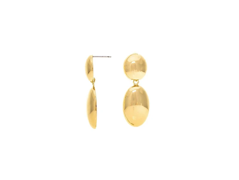 Sleek and timeless, these polished drop earrings bring effortless elegance to any look. Featuring a smooth oval stud paired with a softly contoured oval drop, the high-shine 18K gold-plated finish creates a refined statement with modern appeal. Lightweight and versatile, they transition seamlessly from day to night.