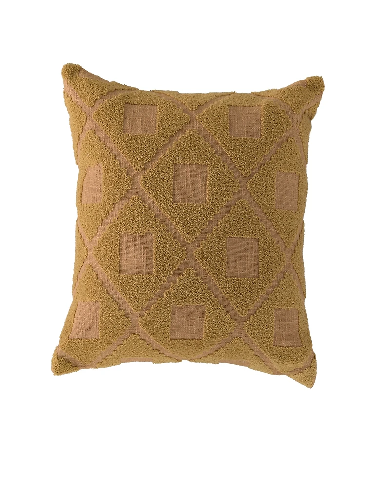 Precisely crafted with computerized embroidery, this pillow features a crisp geometric box-in-diamond pattern brought to life with soft boucle stitching. The textured embroidery adds inviting dimensions and a comfortably plush hand, balancing structure with softness. Finished with a clean knife edge, a coordinating solid cotton back, and a hidden zipper closure for easy cover removal and care, this pillow offers modern pattern with effortless comfort.