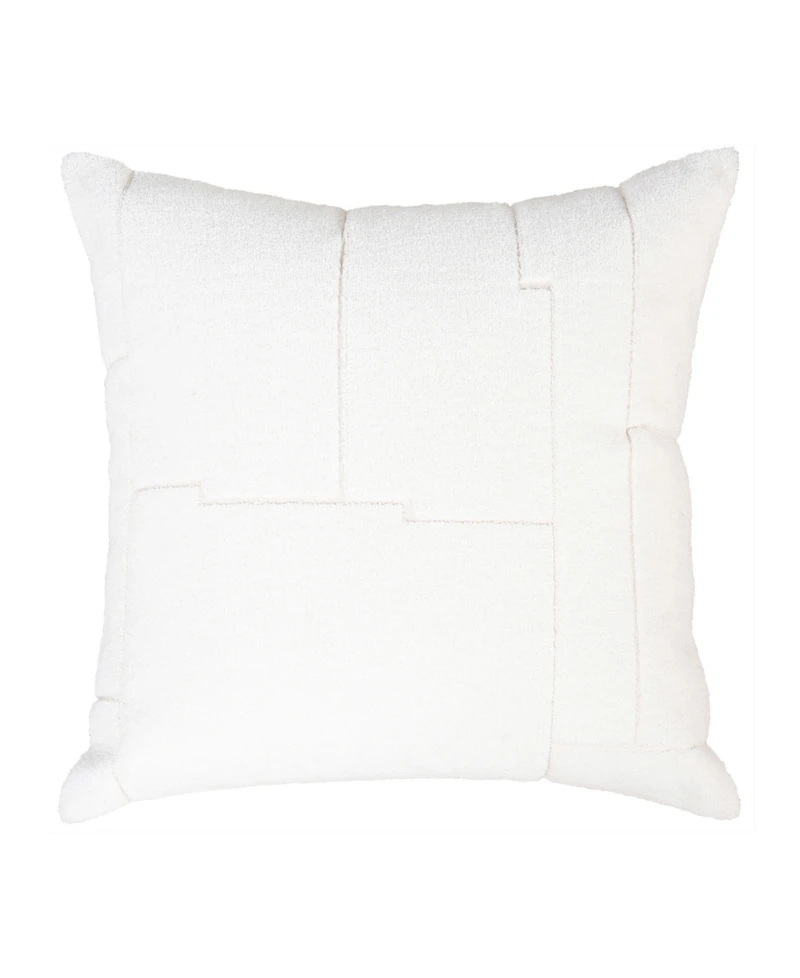 Bring an effortlessly stylish and sophisticated neutral staple to your home decor with this 20"" x 20"" decorative pillow from Rizzy Home. The computerized geometric embroidery, stitched with acrylic thread, adds a sleek, asymmetrical contrast that fits seamlessly into glam, modern industrial, or minimalist spaces. Crafted from cotton casement in soft white and natural tones, its light texture and knife-edged finish offer a touch of understated luxury. A hidden back zipper on the solid coordinating back ensures easy filling and effortless cleaning, while the plush poly fiber insert offers firm, lasting support.