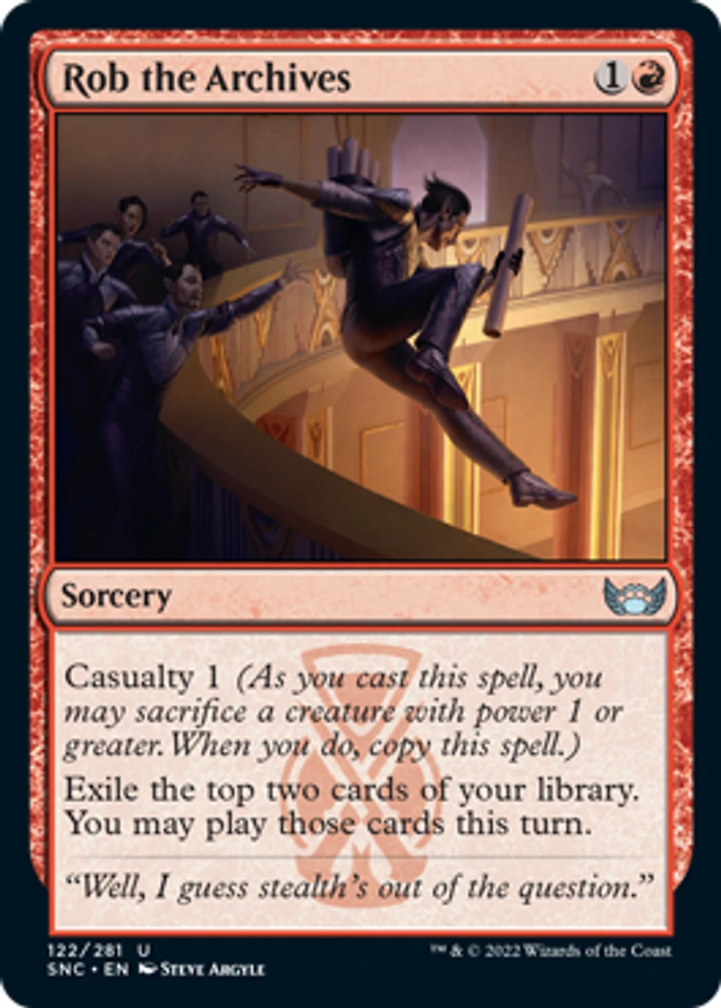 copy this spell and you choose a new target for the copy.) Exile the top two cards of your library. You may play those cards this turn.