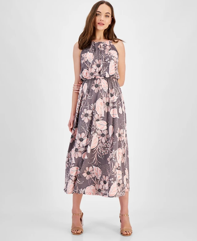 Robbie Bee Petite Floral Halter Sleeveless Maxi Dress