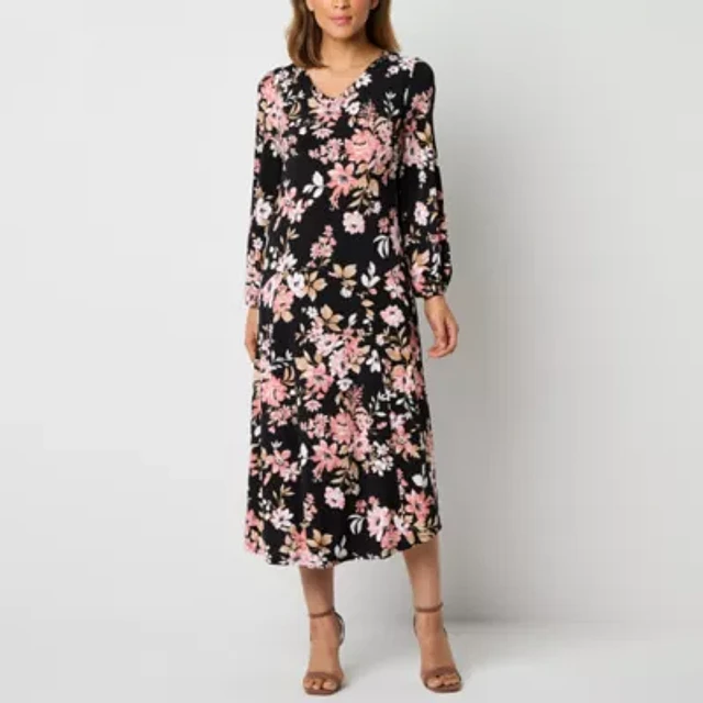 Robbie Bee Womens 3/4 Sleeve Midi Floral Sheath Dress