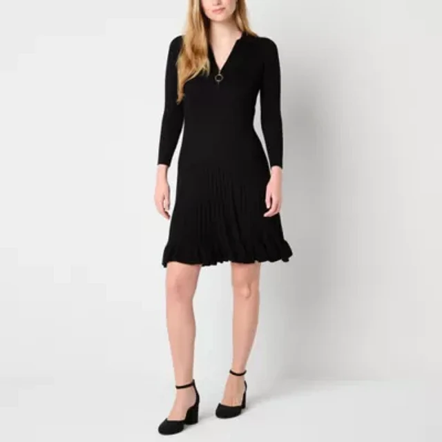 Robbie Bee Womens Long Sleeve Midi Sweater Dress Petite