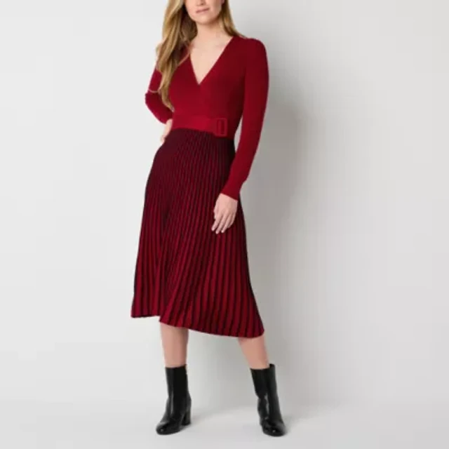 Maia Womens Long Sleeve Belted Midi Sweater Dress
