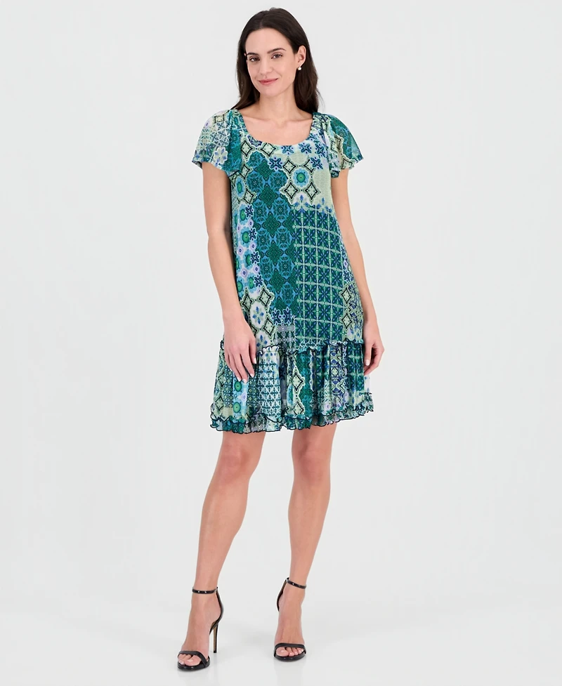 Dress to impress with this effortlessly chic printed mini dress from Robbie Bee. Its scoop neckline can be worn on or off the shoulder depending on your mood.