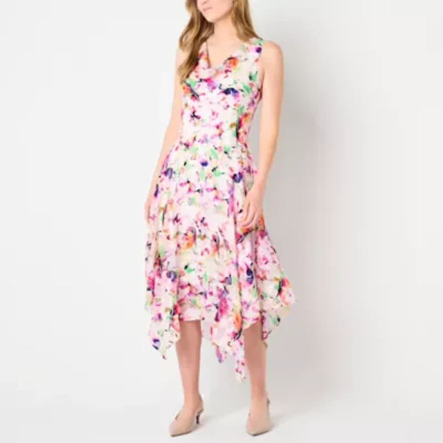 Robbie Bee Womens Sleeveless Floral Midi Fit + Flare Dress