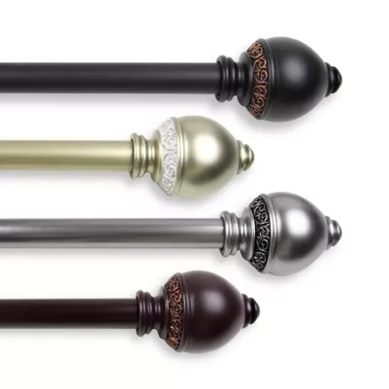 Strength and ease are the benefits of this steel telescoping 1"" curtain rod capped with decorative finials.