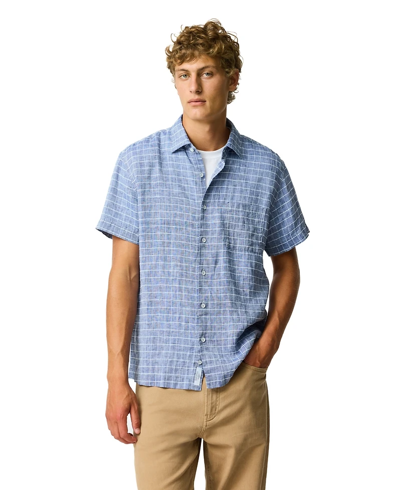 Our Croft view short sleeve shirt features a textured, check linen fabric crafted in Italy by renowned fabric mill, Albini. Designed in our weekend fit, you can wear it with shorts for a casual vibe or with chinos for a more refined look.