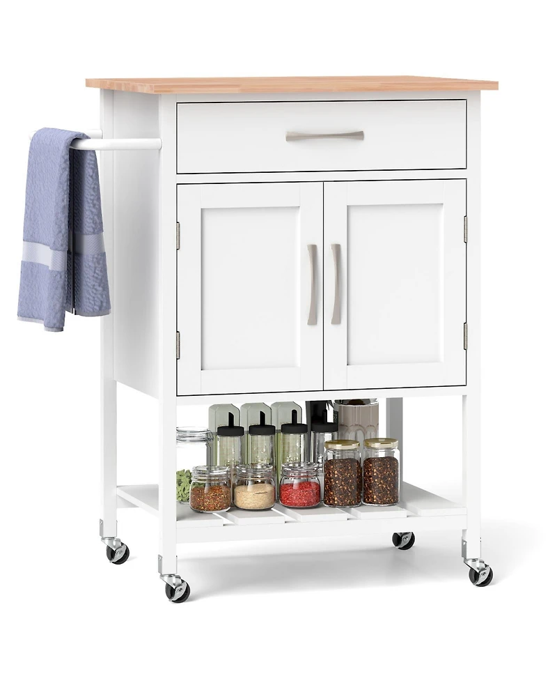 Enhance your kitchen s functionality and style with the Rolling Kitchen Island Cart with Drawer and Towel Rack. This versatile mobile cart is designed to provide extra prep space, storage, and easy access to your kitchen essentials. Featuring a spacious drawer, towel rack, and smooth-rolling casters, it offers the perfect blend of mobility and convenience for any kitchen space.