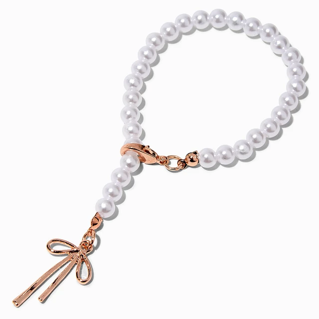 Gold-tone Bow & Pearl Beaded Stretch Bracelet