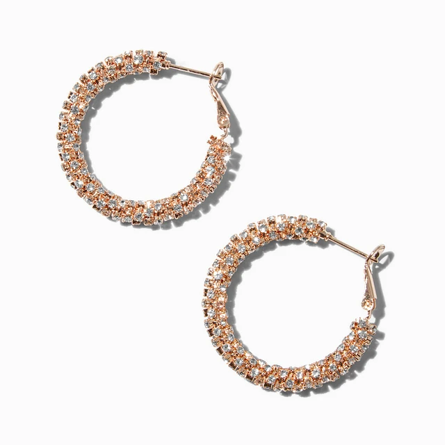 Rose Gold-tone Crystal 30mm Hoop Earrings