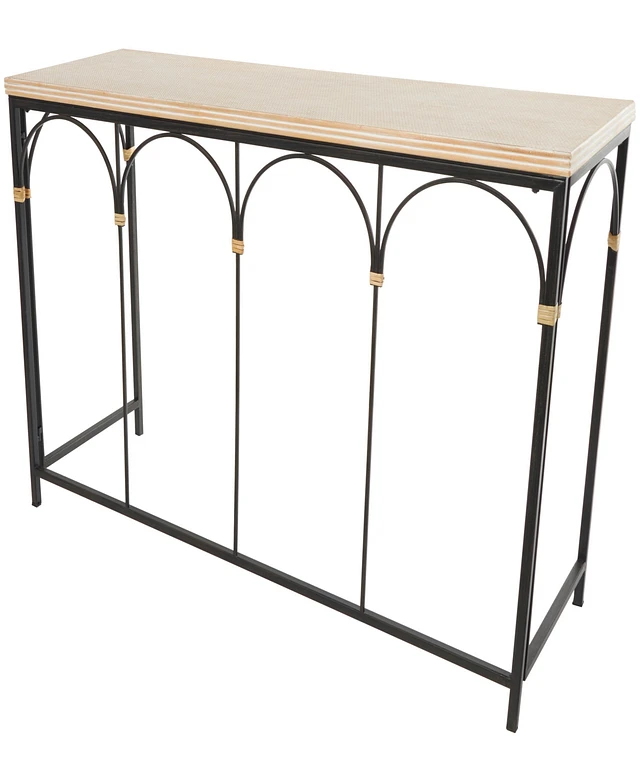 Rosemary Lane 43" x 15" x 31" Wooden Arched Wood Zig Zag Patterned Top and Rattan Accents Console Table