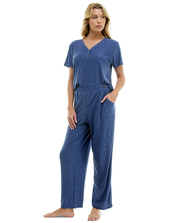 Roudelain Women's Star-Print Henley Pajama Set