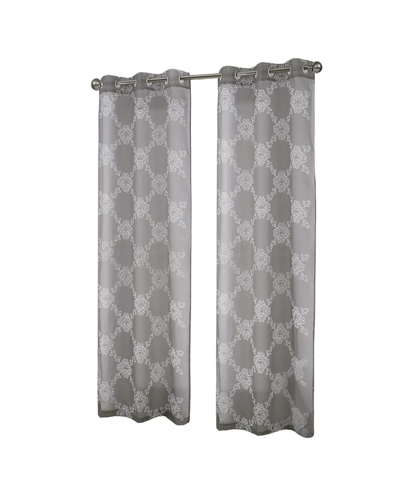 Rt Designer Collection Sheryl 2 Pack Embroidered Dorly Luxurious Decorative Grommet Curtain Panel 36" x 96" Grey in San Juan, PR