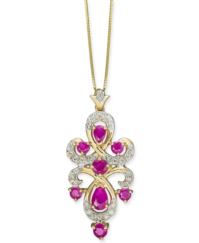 Ruby (2-1/2 ct. t.w.) & Diamond Accent 18" Pendant Necklace in 14k Gold (Also in Emerald)