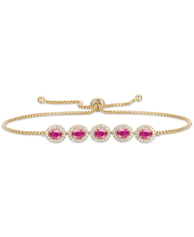 Ruby (1-5/8 ct. t.w.) & Diamond (1/3 ct. t.w.) Halo Bolo Bracelet in 14k Gold