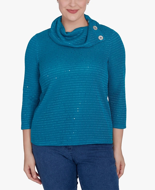 Ruby Rd. Petite Split Cowl Neck Sequin Knit Top