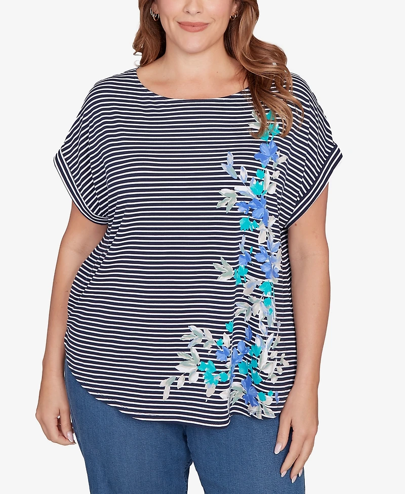 Ruby Rd. Plus Floral Stripe Jersey Top